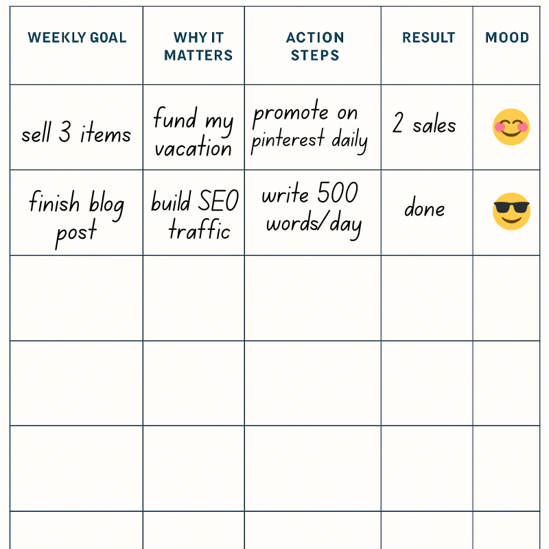 Big Goal: “Earn $500/month”